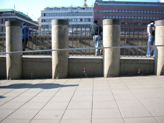 Il devait s'appeler Pont des Perles d'après les mystérieuses oeuvres d'art qui sont apparus dessus. En tant que projet à long terme, nous voulons continuer l'action jusqu'à ce que les officiels reconnaissent que ce lieu mérite un nom et que ce nom doit être Pont des Perles. La suite du récit en images :