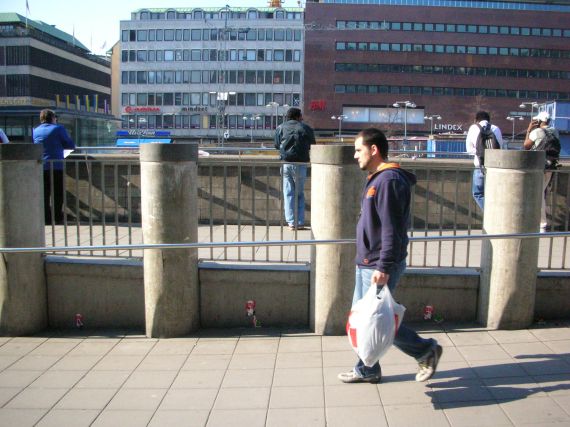 deux jours après seulement l'inauguration les oeuvres ont été sauvagement arrachés par des 'gens sans histoire' résidant probablement dans le quartier. Dans leur grande rage, ils ont oublié que les traces laissées par la colle seraient probablement moins esthétiques que les oeuvres elles-mêmes... nous remédierons bientôt à ce problème...